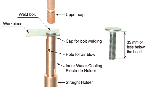 Inner Water-Cooling Electrode for Bolt Welding is a electrode holder for bolt welding which water circulate through the electrode, it offers increased cooling efficiency while it is slim shape.