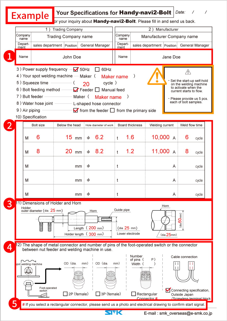 * If you do not have enough space to fill out the form, please send us multiple copies of the production specifications.