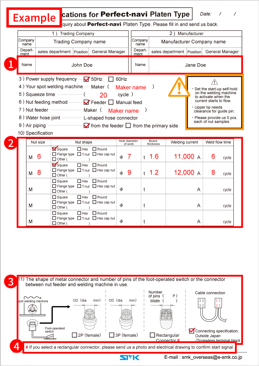 * If you do not have enough space to fill out the form, please send us multiple copies of the production specifications.