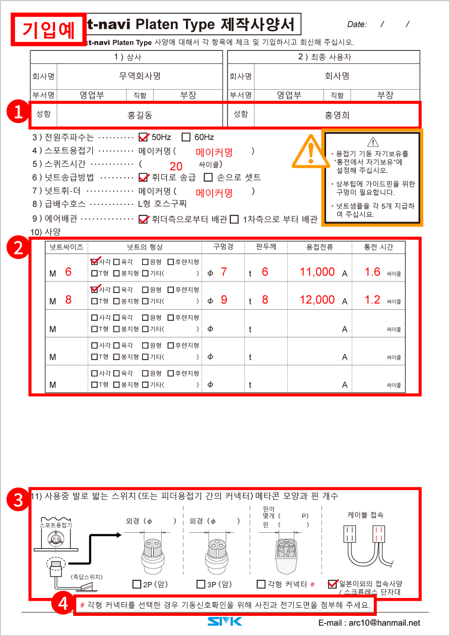 *기입란이 부족한 경우, 제작 사양서를 여러 장 보내주시기 바랍니다.