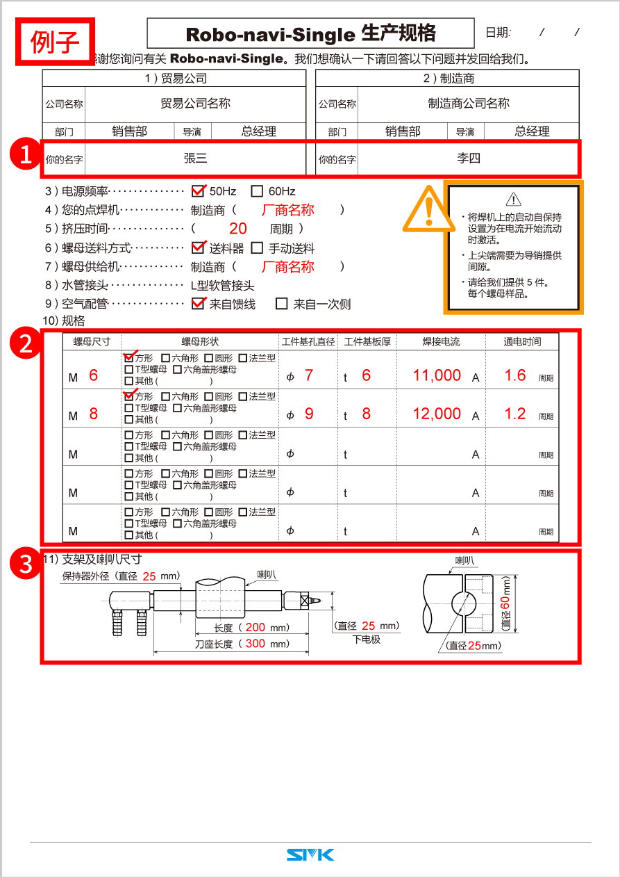 * If you do not have enough space to fill out the form, please send us multiple copies of the production specifications.