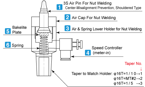 The lower electrode set is a set of parts for nut welding using the lower holder.