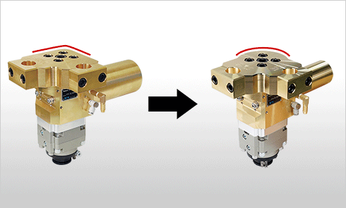 Make job change quickly because the arm automatically rotates. The rotating arm is clamped by the internal air cylinder of main unit.