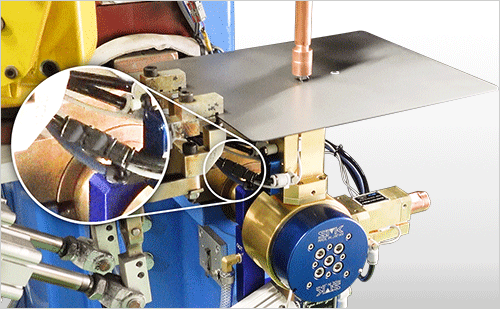 Air blow system reduces spatter adhesion to nuts, guide pin, and inside the unit Air-cooling effect reduces the heat of electrodes.