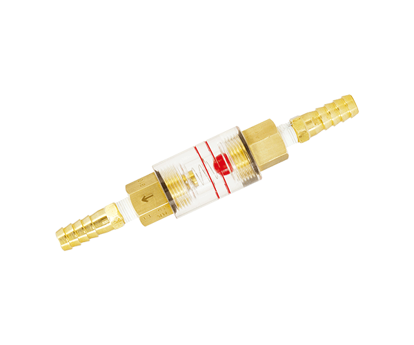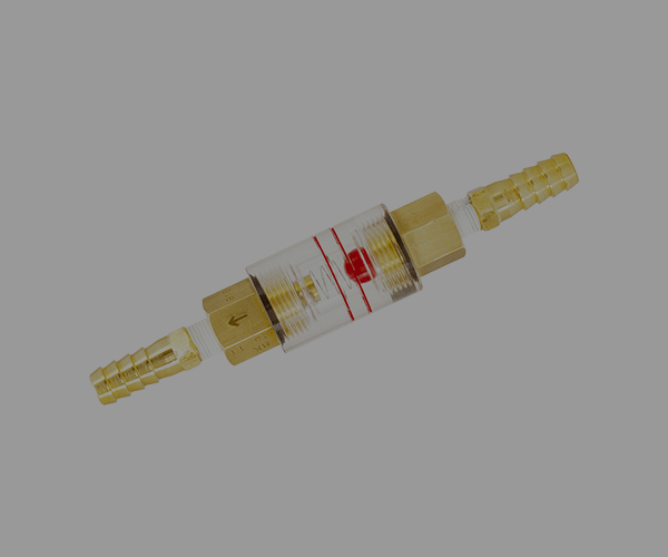 Detector for the flow of fluid in the visual motion of the float inside transparent tube.