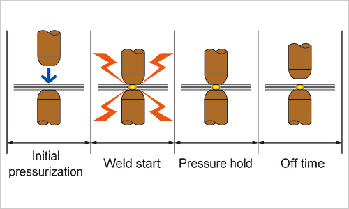 Welding current, weld time, and welding force are called three welding conditions.