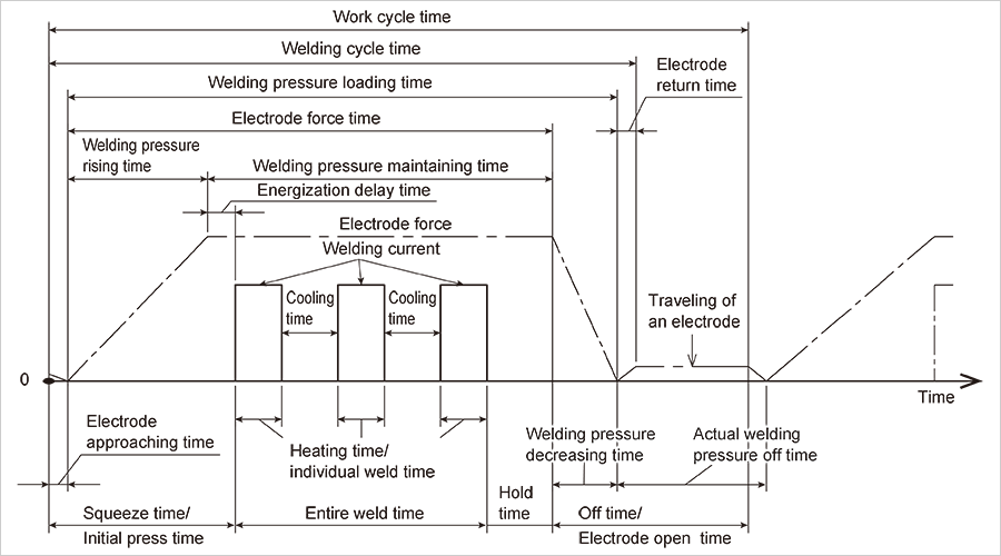 Note 2: Cycle time is the sum(in case of multiple-impulse welding, use each total sum value) of load time(weld time) and non-load time (down time) a currents.