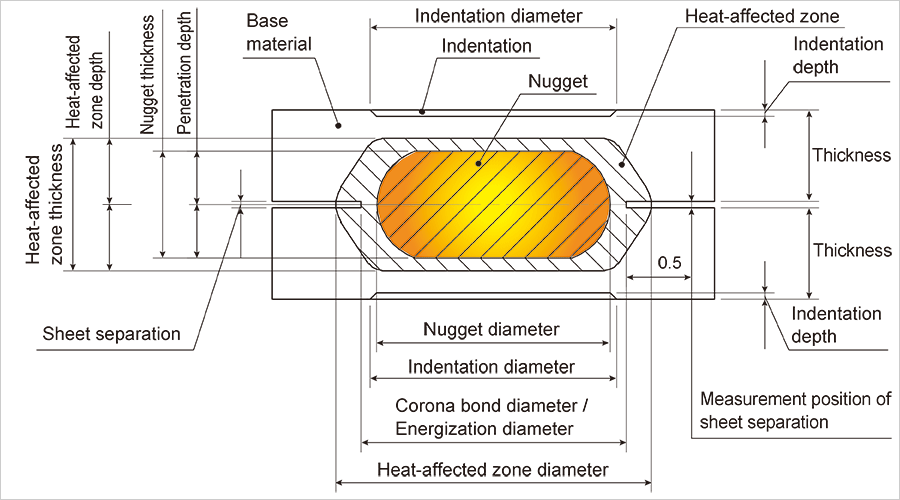 It is also called an electrode indentation diameter or a dent diameter. (See JIS Z 3139 about measurement method)