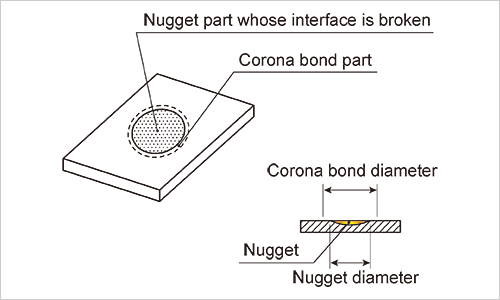 Fig.7-Definition of welding diameter at the interface break part and Corona bond diameter