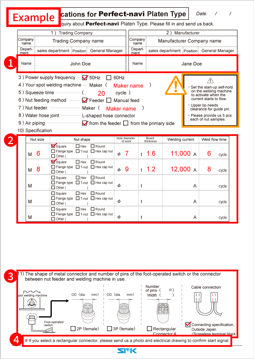 * If you do not have enough space to fill out the form, please send us multiple copies of the production specifications.
