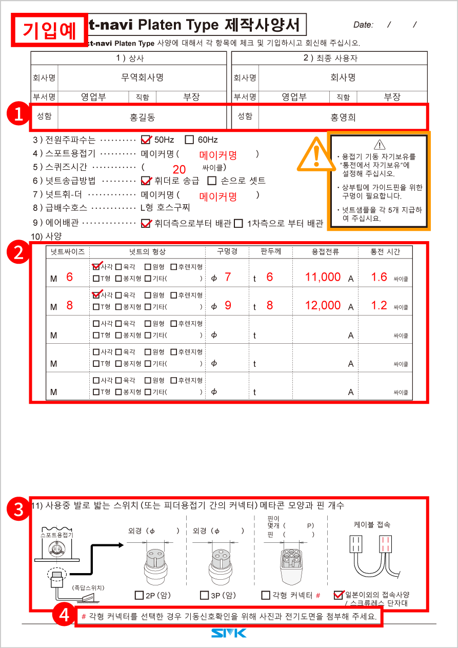 *기입란이 부족한 경우, 제작 사양서를 여러 장 보내주시기 바랍니다.