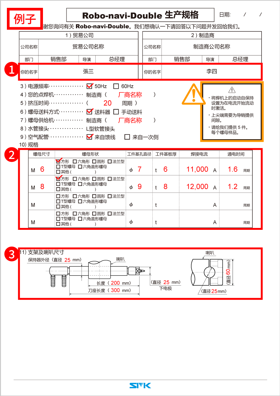 * If you do not have enough space to fill out the form, please send us multiple copies of the production specifications.