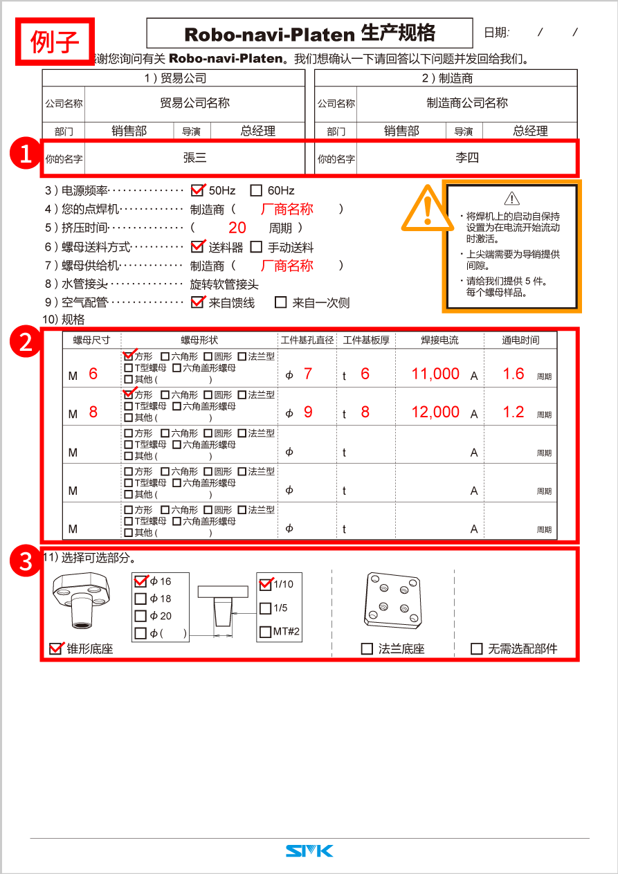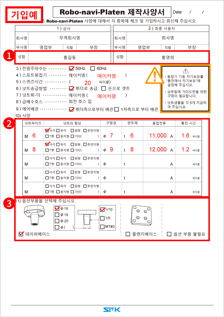 *기입란이 부족한 경우, 제작 사양서를 여러 장 보내주시기 바랍니다.