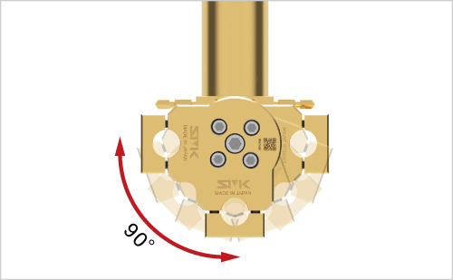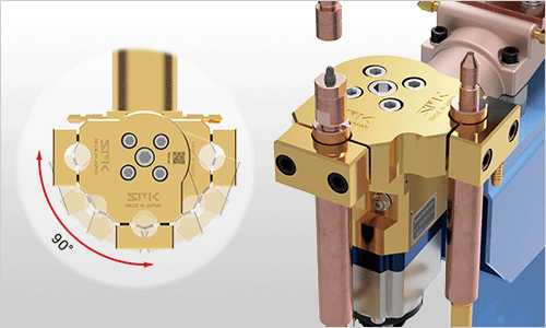 Make job change quickly because the arm automatically rotates. The rotating arm is clamped by the internal air cylinder of main unit.