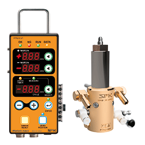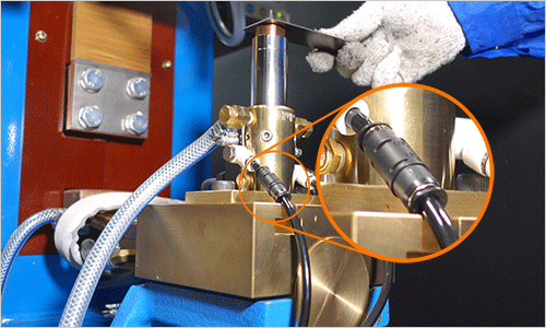 Air blow system reduces spatter adhesion to nuts, guide pins, and inside of the unit. Air-cooling effect prevents heating of the electrode. This system also leads to guide pin buoyancy effect, and improve detection accuracy.
